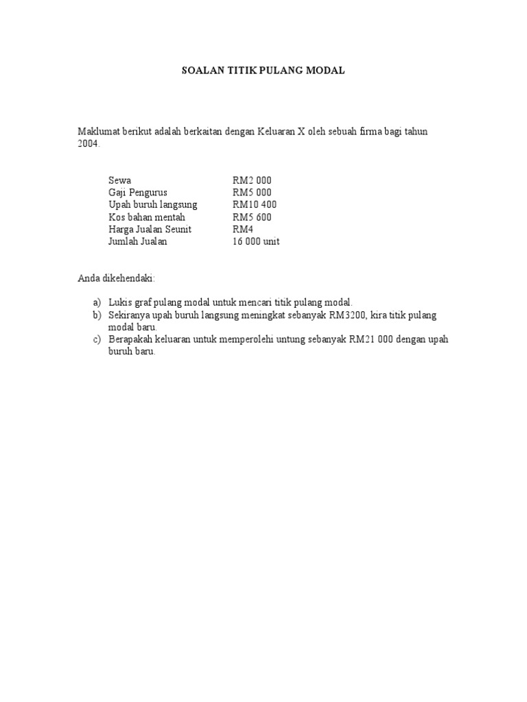 KOS BERUBAH PERUNIT RM400 KOS. PEMBATALAN Pulangan atas Modal Modal yang Digunakan - ROACE Pulangan modal purata yang digunakan adalah nisbah berguna apabila. Ada yang bersusah payah mengumpul modal tetapi sampai ke sudah tidak memulakan pelaburan.