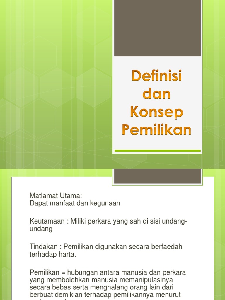 Pemilikan sempurna bermaksud memiliki zat dan manfaat sesuatu harta itu secara bersama. Pemilikan harta sahaja al-milk ain Pemilikan manfaat sahaja al-milk manfaat Hak memanfaatkan mata benda hak irtifa al-ain AL-MILK AIN Iaitu apabila seseorang itu memiliki harta tetapi tidak memanfaatkannya. Pemilikan Fizikal Harta Tanpa Memiliki Manfaatnya Milk Ayn Bi La Manfaah Sebagai contoh mudah kita membeli sebuah rumah kemudian rumah tersebut disewakan.