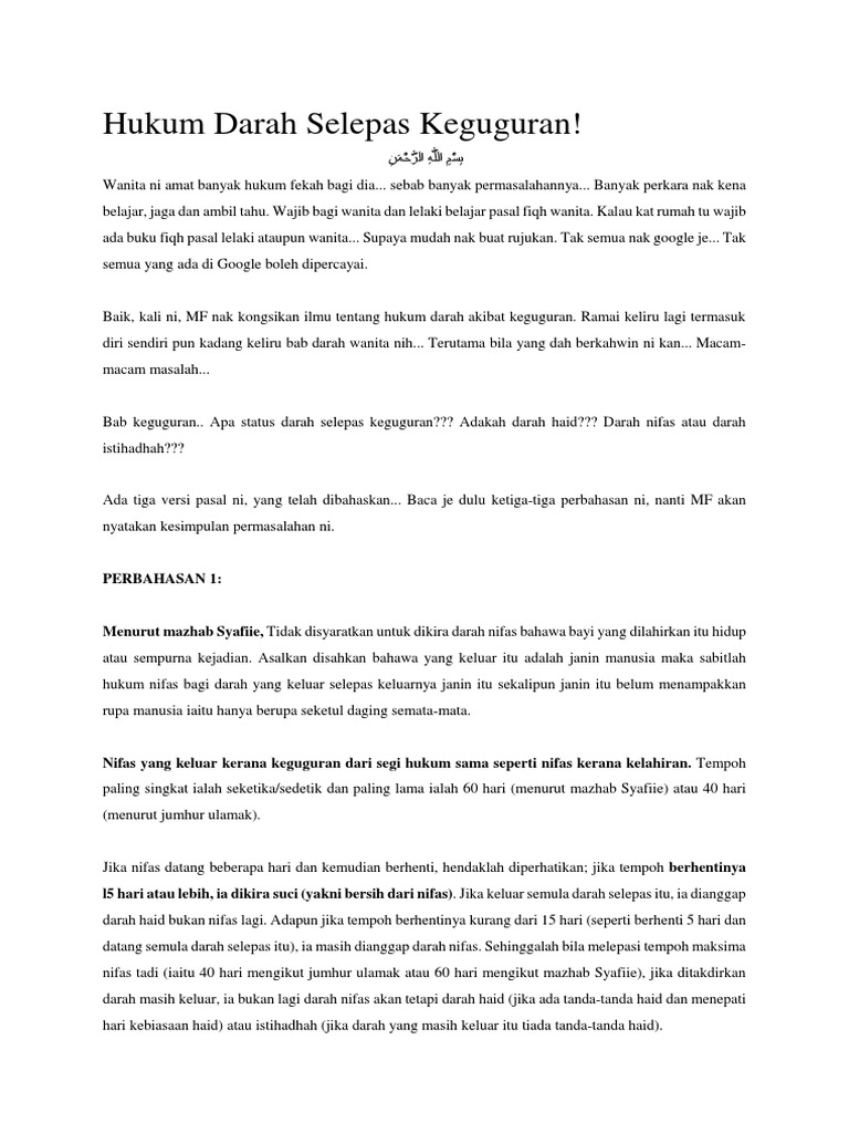 Hukum Darah Selepas Keguguran Pdf